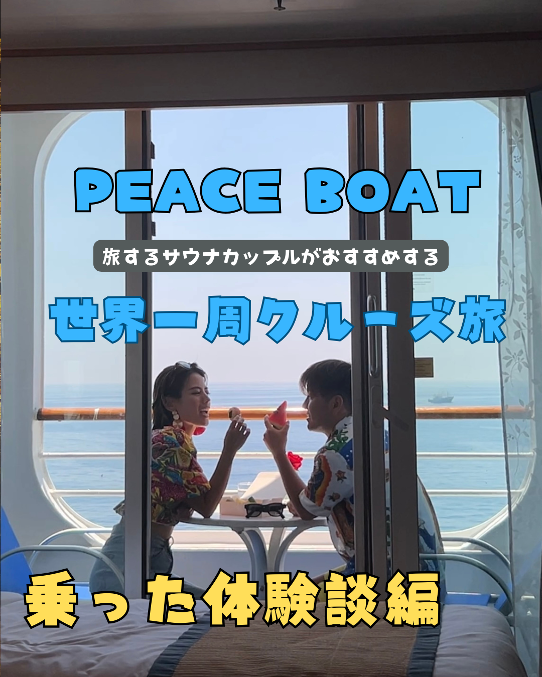 「ピースボート」という世界一周クルーズがあるのをご存知ですか? プールやレストランがある大型客船で 109日間で世界をぐるっとめぐる壮大なルートで、アジア、アフリカ、中南米、南太平洋を巡ります 老若男女、約1800人の方が乗船しています。 僕は、船旅の魅力を発信する『メッセンジャー』として ピースボート Voyage121 に乗船しています👏 あの居酒屋に貼ってあるポスターのやつです 今回僕が乗船するのは、横浜からシンガポール区間の乗船になります。 少しでもピースボードの魅力がわかるようなことを発信できればなと思ってます。 興味ある方はこちらのリンクあるので見てみてください。 インスタでも発信しています、 旅するサウナカップルTABISAUNA |